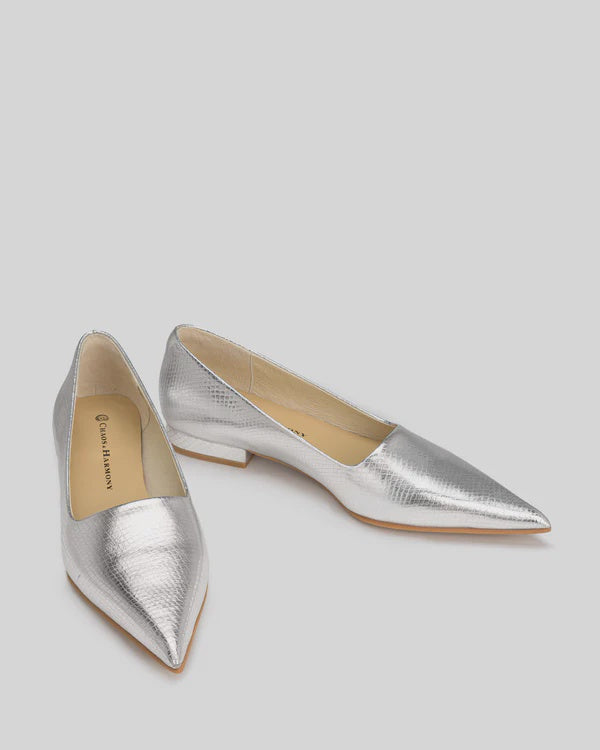 Silver snake embossed leather pointed flat