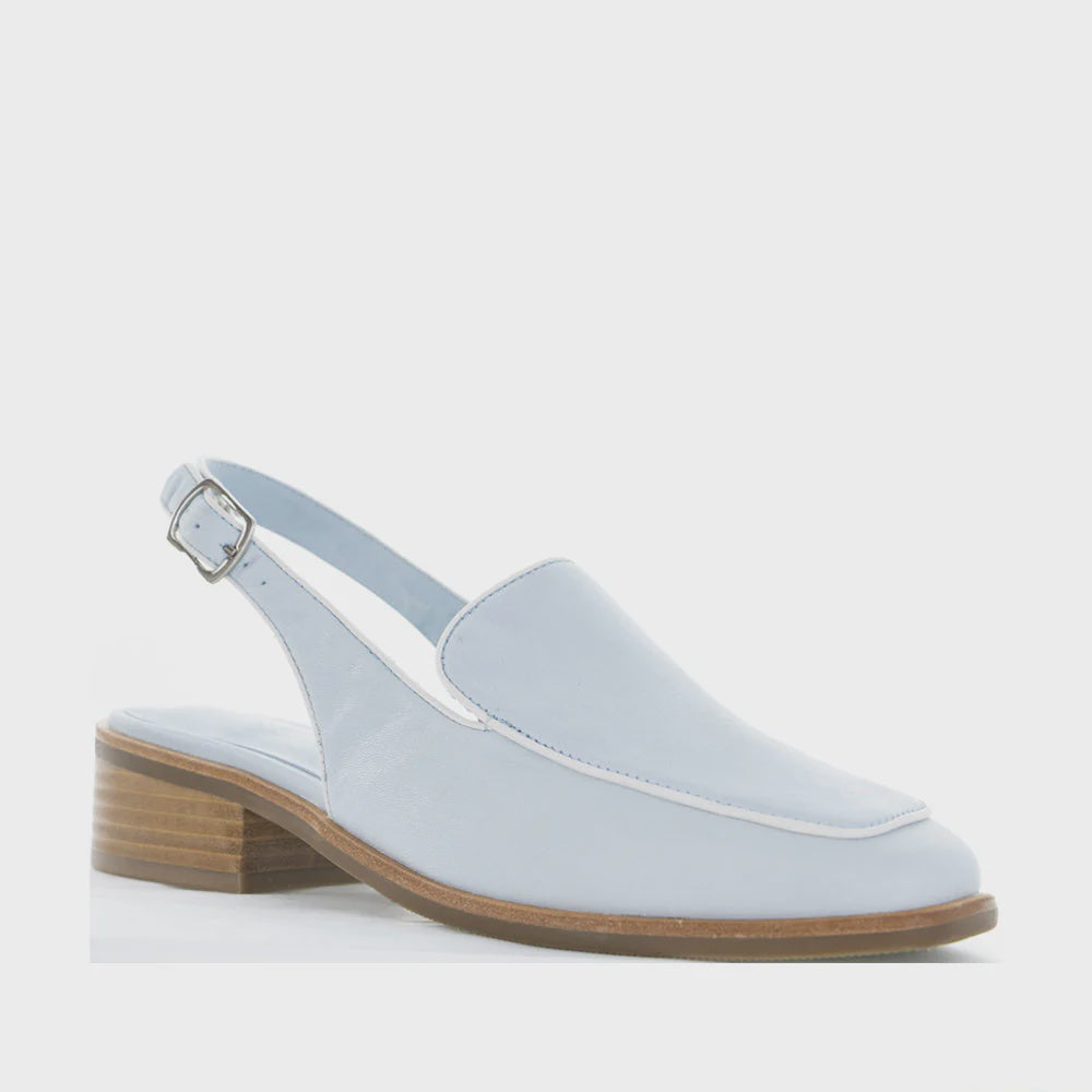 Step out in style with the Danter Sandals. Featuring a sky-blue leather upper with fresh white trim, a chic square toe, and a secure ankle strap. The 4 cm block heel and cushioned insole keep you comfortable all day.